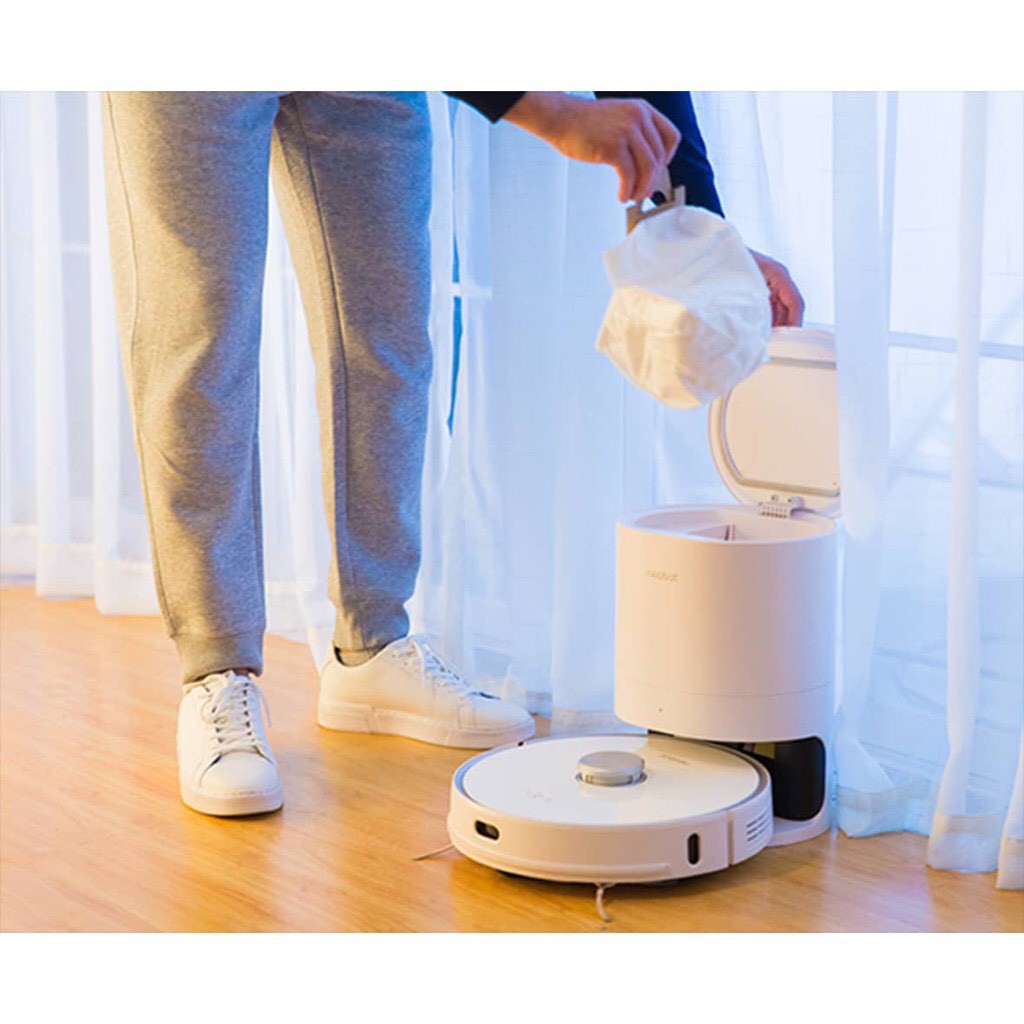 Neabot NoMo N1 Plus – Robot hút bụi lau nhà cao cấp. Phiên bản quốc tế đang là sản phẩm được săn đón nhiều nhất trên Amzon. Với thiết kế sang trọng, hiện đại cùng trí tuệ nhân tạo hiện đại nhất. Máy cho khả năng lưu nhớ 30 bản đồ.Giải pháp làm sạch rảnh tay tối ưu. Hãy quên đi việc hút bụi trong tối đa một tháng với thùng rác tự làm sạch Neabot. Neabot tự động chuyển chất bẩn thu được từ robot vào thùng rác có lót túi mà bạn không cần phải chạm vào đống rác đó. Chúng ta sẽ nhận được thông báo khi lượng rác được chứa đầy trong thùng rác