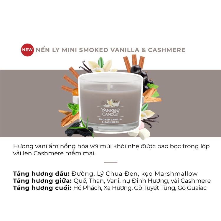 Nhà cửa & Đời sống > Trang trí nhà cửa > Nến & đồ đựng nến || Nến ly mini Yankee Candle - Smoked Vanilla & Cashmere (37g)Còn hàng
