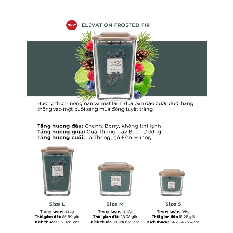 Nhà cửa & Đời sống > Trang trí nhà cửa > Nến & đồ đựng nến || [Mã LIFEMALL991 giảm 10% đơn 99K] Nến ly vuông Elevation Yankee Candle size S - Frosted Fir (96g)Còn hàng
