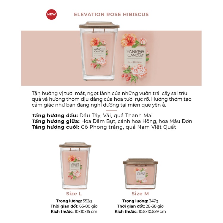 Giới thiệu Nến ly vuông Elevation Yankee Candle size L - Rose Hibiscus (552g)