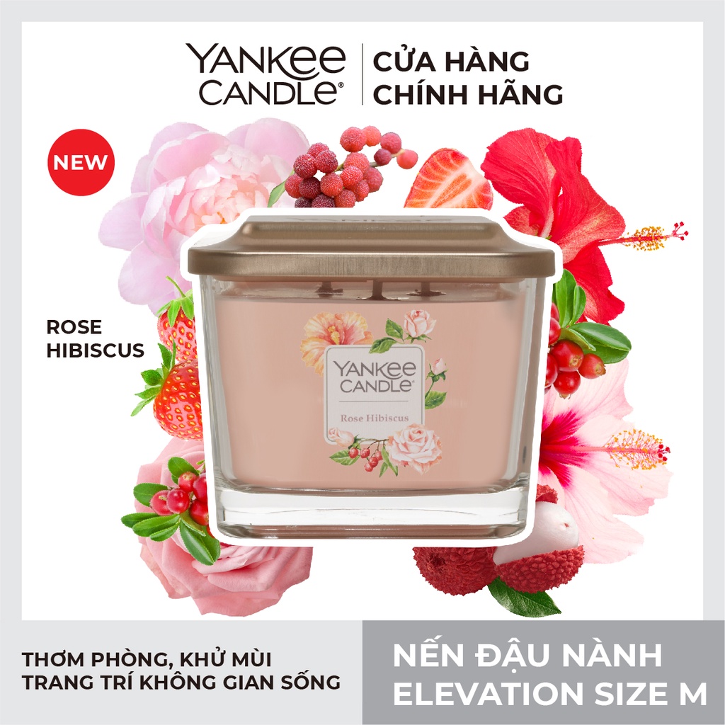 Nhà cửa & Đời sống > Trang trí nhà cửa > Nến & đồ đựng nến || [Mã LIFEMALL991 giảm 10% đơn 99K] Nến ly vuông Elevation Yankee Candle size M - Rose Hibiscus (347g)Còn hàng