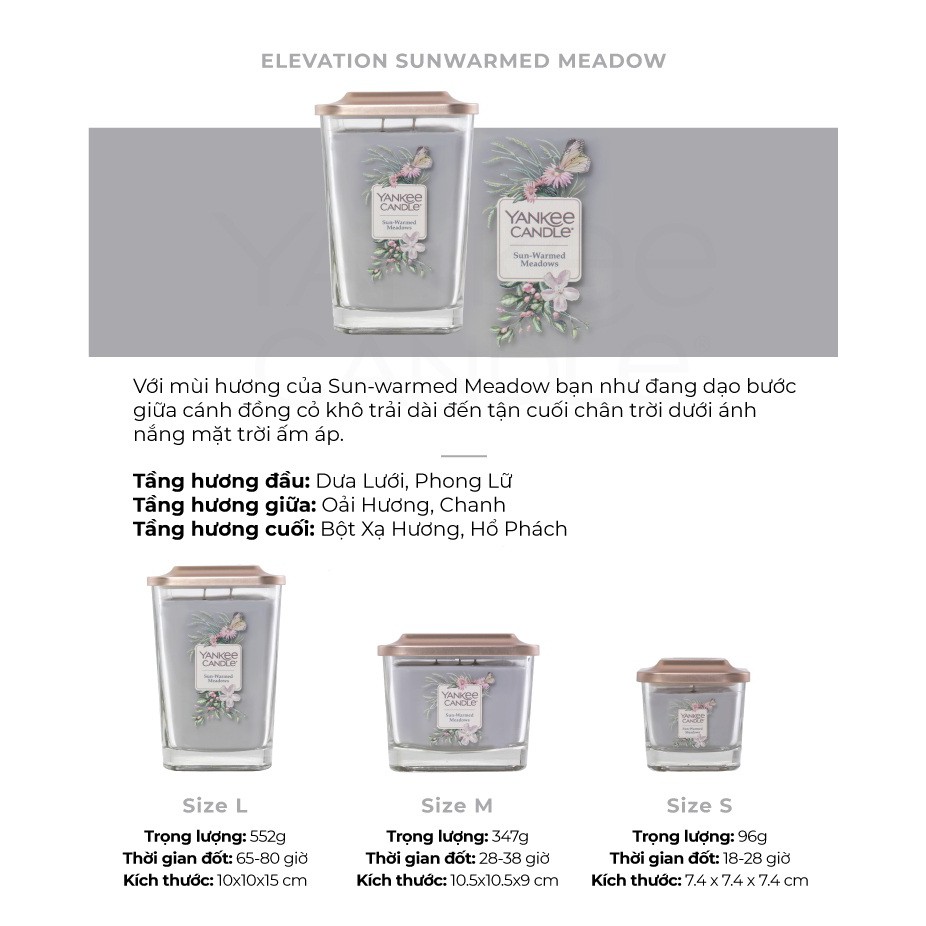 Giới thiệu Nến ly vuông Elevation Yankee Candle size M - Sunwarmed Meadow (347g)