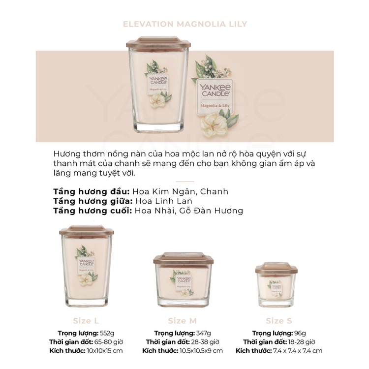 Giới thiệu Nến ly vuông Elevation Yankee Candle size M - Magnolia Lily (347g)