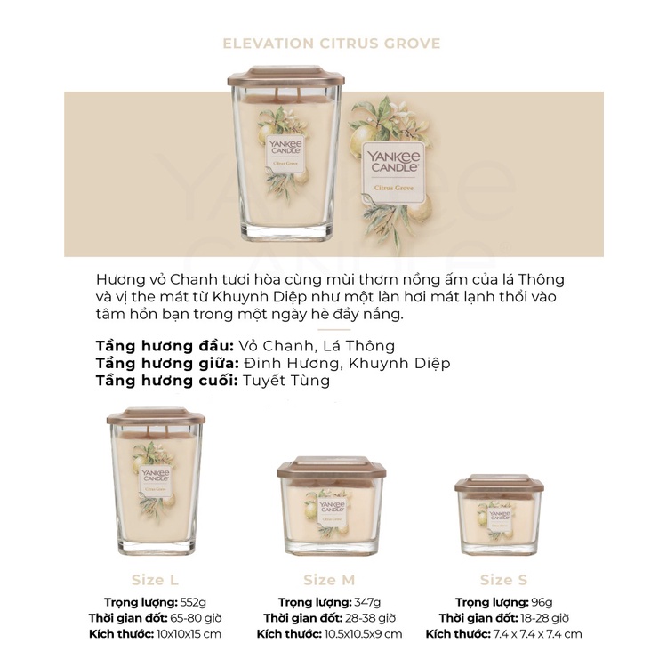 Nhà cửa & Đời sống > Trang trí nhà cửa > Nến & đồ đựng nến || [Mã LIFEMALL991 giảm 10% đơn 99K] Nến ly vuông Elevation Yankee Candle size M - Citrus Grove (347g)Còn hàng