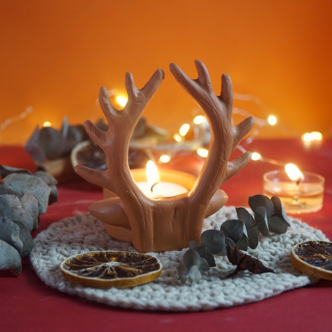 Nhà cửa & Đời sống > Trang trí nhà cửa > Nến & đồ đựng nến || Đế Bỏ Nến Tealight Đất Nung - Sừng Tuần Lộc - DN39Còn hàng