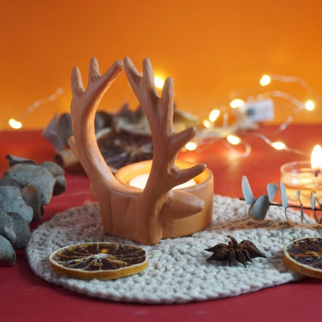 Đế Bỏ Nến Tealight Đất Nung - Sừng Tuần Lộc - DN39