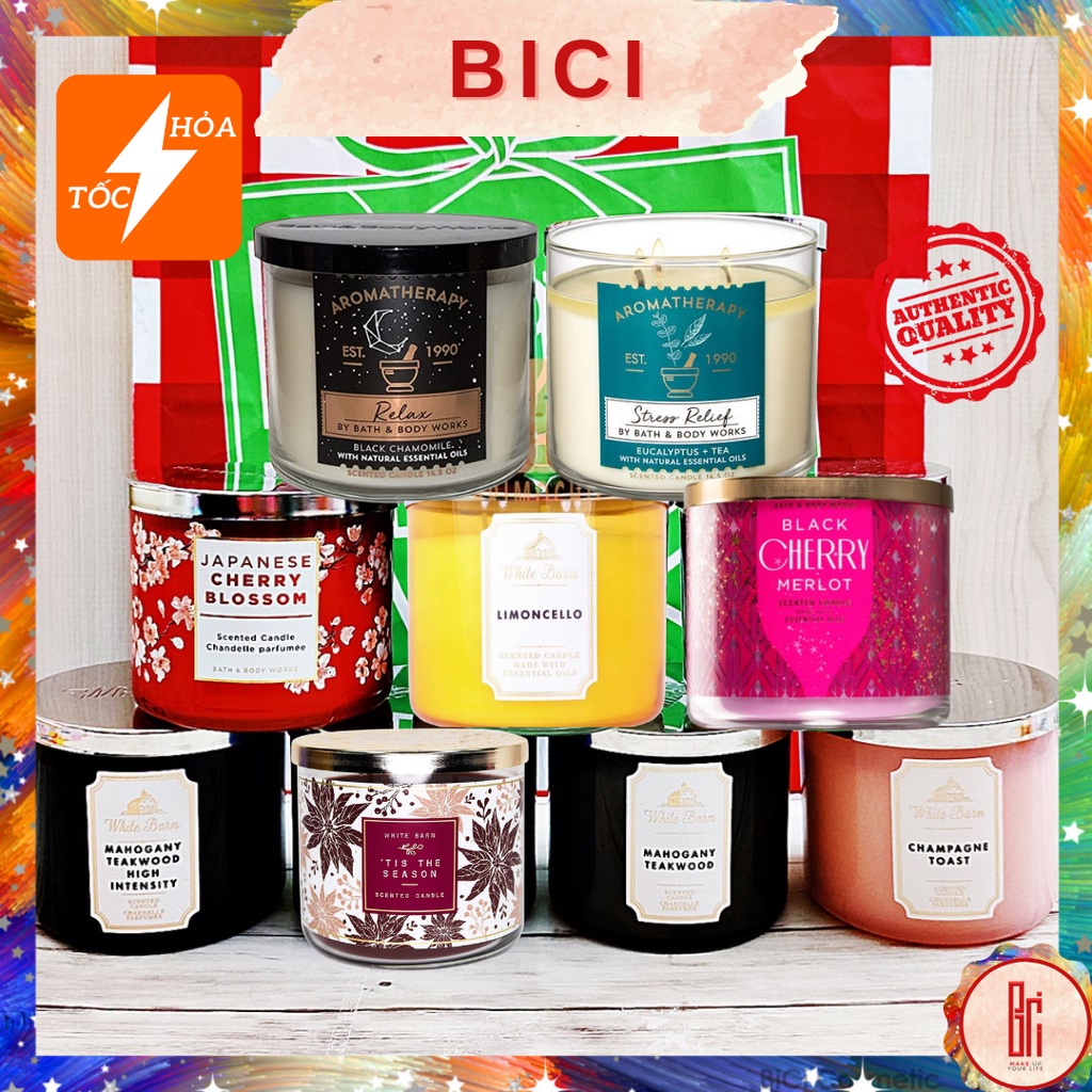 Lưu ý : BBW hay có những collection chủ để khác nhau mà cho sản xuât ra bao bì phù hợp vớ collection ý, nên 1 mùi hương nến có nhiều bao bì là điều hoàn toàn bình thường nha khách. Nên là Bici sẽ chụp ảnh nến real thật ở từng tên biến thể, nếu cần hình chi tiết hơn.. khách cứ nhắn tin em nhé ^^Nến Thơm từ nhà BATH & BODY WORK, không những giúp làm sạch không khí xung quanh như phòng làm việc, phòng khách, phòng ngủ, phòng tắm... mà còn giúp thư giãn, xả stress sau một ngày làm việc căng thẳng.
