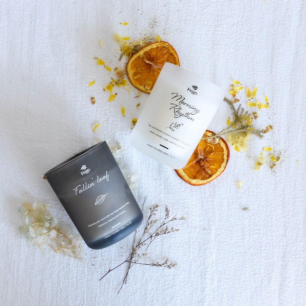 Nến thơm cao cấp Fego tinh dầu tự nhiênChu du trong khu rừng của bốn mùa, Fallin' leaf dịu dàng kể câu chuyện về những chiếc lá, trong đó lá trà đưa lời tươi mát, thyme thoảng hương tinh nghịch, tobacco lặng lẽ thâm trầm. Còn Morning Rhythm không gì hơn là tiếng gọi dịu ngọt của buổi sáng mùa thu trong Scarborough Fair bởi sự tụ hội của Rosemary, Thyme, Sage & Parsley.