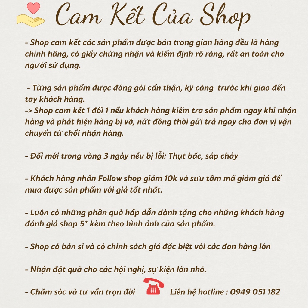 - Khách nhận hàng ĐÁNH GIÁ SHOP 5* KÈM HÌNH ẢNH SHOP SẼ GIẢM 5% CHO ĐƠN HÀNG TIẾP THEO