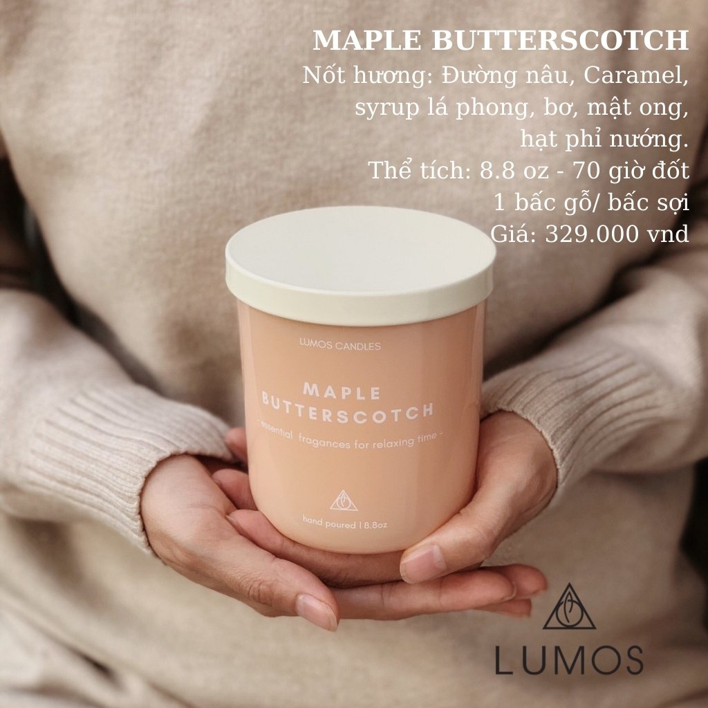 Nhà cửa & Đời sống > Trang trí nhà cửa > Nến & đồ đựng nến || Nến Thơm Cao Cấp Lumos Maple Butterscotch (Caramel, bơ, mật ong) – NT22 - Nến trang trí - Đạt tiêu chuẩn Quốc TếCòn hàng