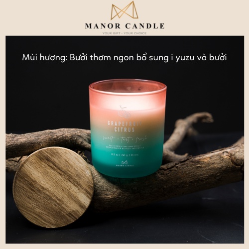 Nhà cửa & Đời sống > Trang trí nhà cửa > Nến & đồ đựng nến || Nến thơm Grapefruit Citrus chính hãng Manor Candle, size 8.8 oz 241gCòn hàng