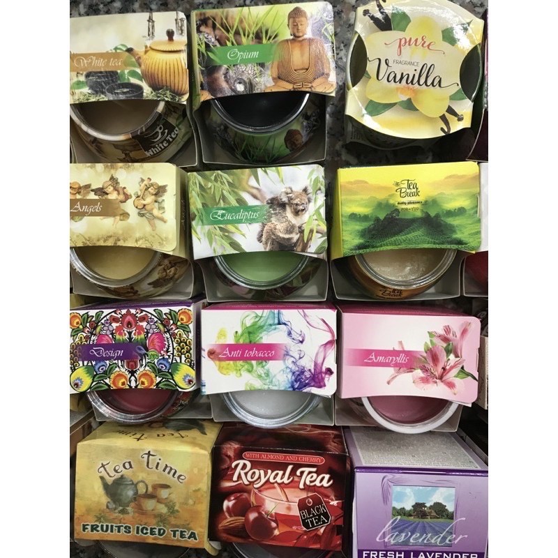 - Mỗi lọ nến thơm 80g. Kích thước 6,3*4,2cm. Đựng trong hộp thiếc hoa văn rất đẹp và an toàn.