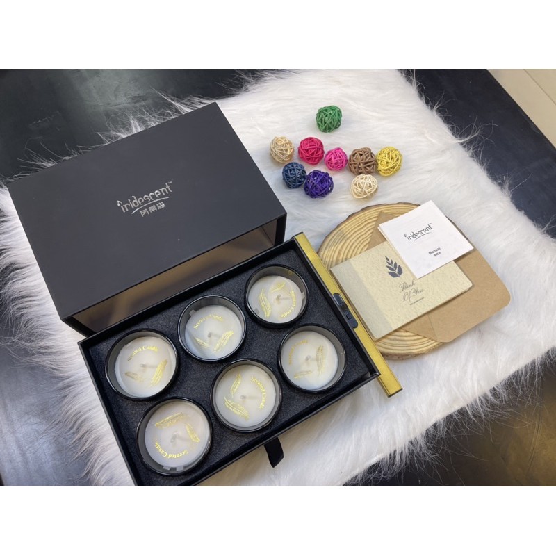 - Nến thơm 1 set 6 ly xinh xinh với tổng dung tích lên đến 900gr giúp bạn có đến 100h thư giãn thoải mái. Hộp giấy cũng siêu xinh làm quà tặng là quá ok luôn nhé.