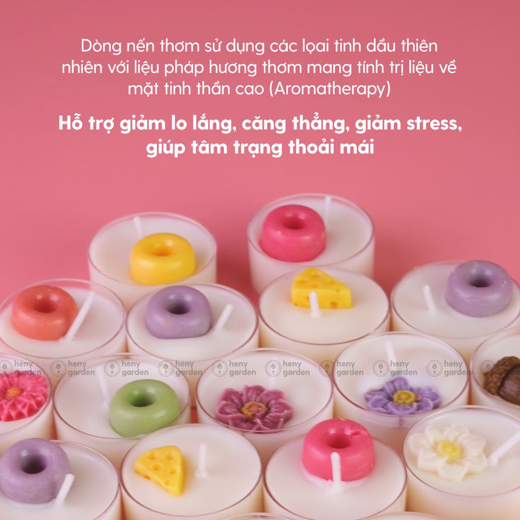 Giới thiệu Nến Thơm Thiên Nhiên Tealight Mini Tinh Dầu 3 Tầng Hương Phối Hợp (Size Nhỏ Tester) Heny Garden – Tặng Tinh Dầu Mẫu Thử