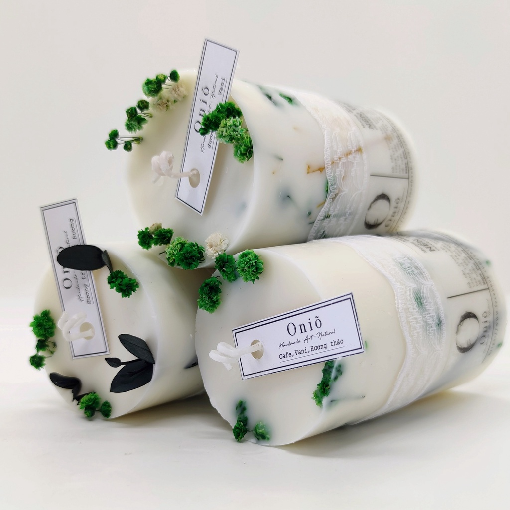 Nhà cửa & Đời sống > Trang trí nhà cửa > Nến & đồ đựng nến || Nến trụ tròn hương tinh dầu, Trang trí hoa khô thiên nhiên. Handmade by Oniõ, kích thước 6x9,5cm, 230g sápCòn hàng