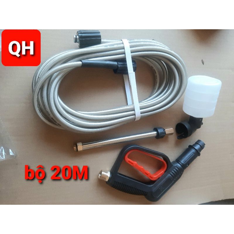 Nhà cửa & Đời sống > Dụng cụ & Thiết bị tiện ích > Dụng cụ > Máy rửa áp lực nước || Bộ ống dây + súng + ống nối inoc +bình bọt dùng cho máy xịt rửa xe áp lực cao ( như hình )Còn hàng