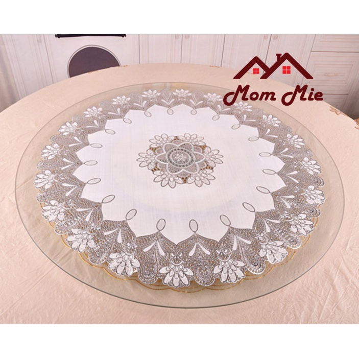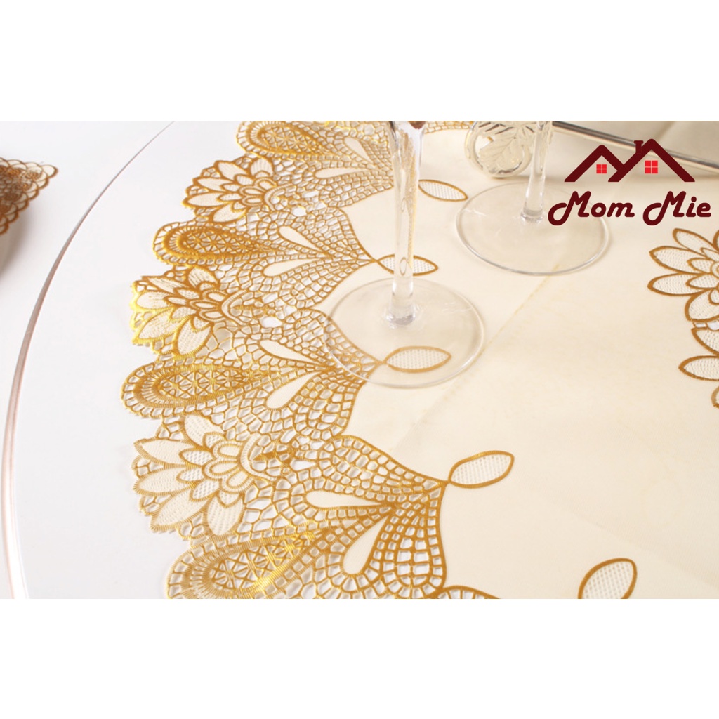 [ĐƯỜNG KÍNH 70CM] KHĂN TRẢI BÀN TRÒN HOA VĂN DẬP NỔI SANG TRỌNG - MÀU VÀNG, BẠCThông tin về sản phẩm dưới đây thuộc sở hữu của shop Mom Mie, mô tả đúng theo chất lượng sản phẩm của shop. Vui lòng không sao chép.