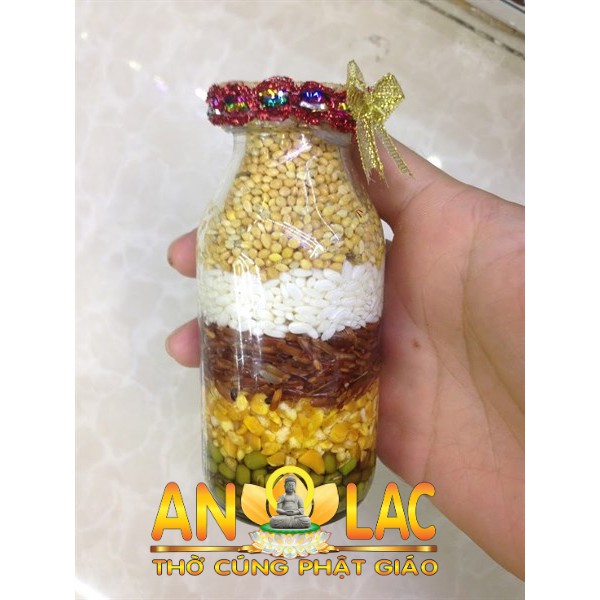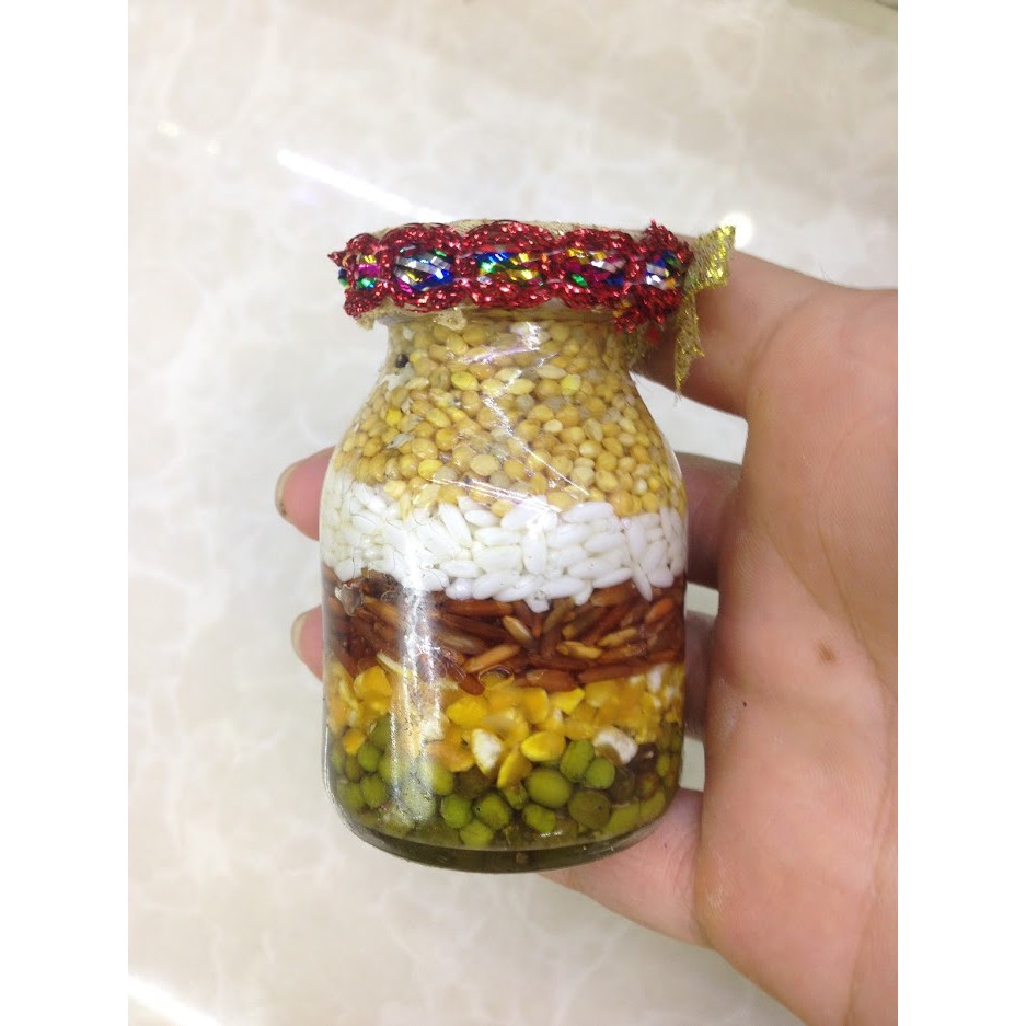 Chai Ngũ cốc phong thủy năm thứ đậuThích hợp dùng để trang trí nhà cửa , đặt ngay tủ tài địa ,trên bàn làm việc,trên xe hơi,bày trong tủ kính trang trí,làm quà tặng bạn bè,người thân giúp hanh thông công việc , gia đình đầy đủ , sung túc.