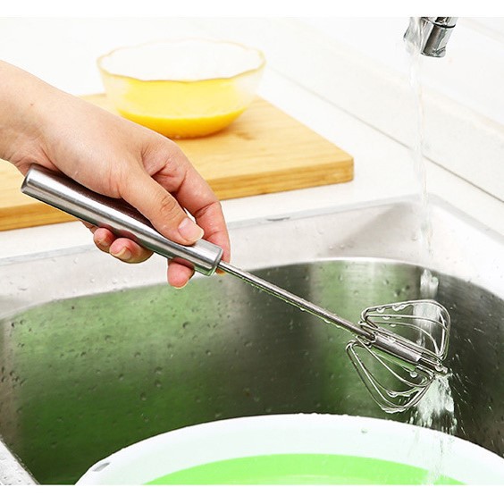 Dụng cụ được thiết kế phần đánh trứng tự quay chỉ bằng lực ấn nhẹ ở tay cầm.