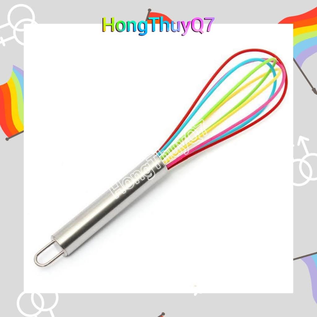 Nhà cửa & Đời sống > Dụng cụ nhà bếp > Phới đánh trứng || Cây Đánh Trứng, Phới lồng màu cầu vồng Silicon & thép không gỉ 25cm (1c) trộn bột không dính - HongThuyQ7Còn hàng