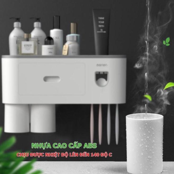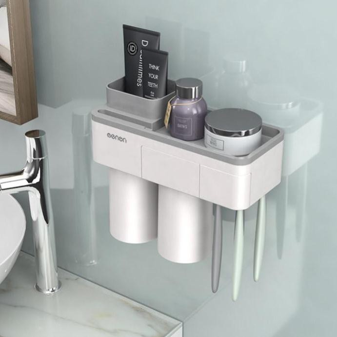 Bộ Nhả Kem Đánh Răng Oenon - Kệ Dán Tường Đựng Đồ Nhà Tắm, Khay Đựng Bàn Chải Cốc Đánh Răng Cao Cấp