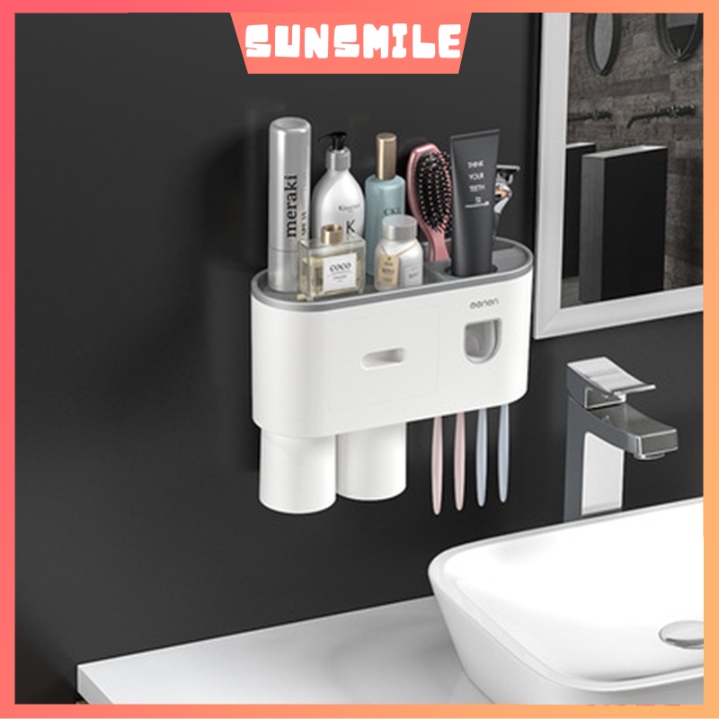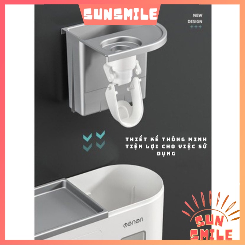 Bộ nhả kem đánh răng OENON tự động Sun Smile kệ treo tường để đồ phòng tắm sang trọng, tặng kèm miếng dán