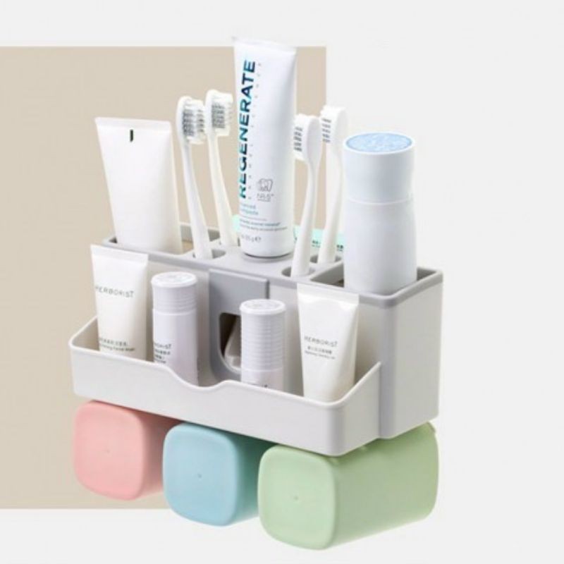 Nhà cửa & Đời sống > Đồ dùng phòng tắm > Kệ đựng bàn chải, kệ nhả kem đánh răng || Bộ nhả kem đánh răng tặng kèm 3 cốc lúa mạch dán tườngCòn hàng
