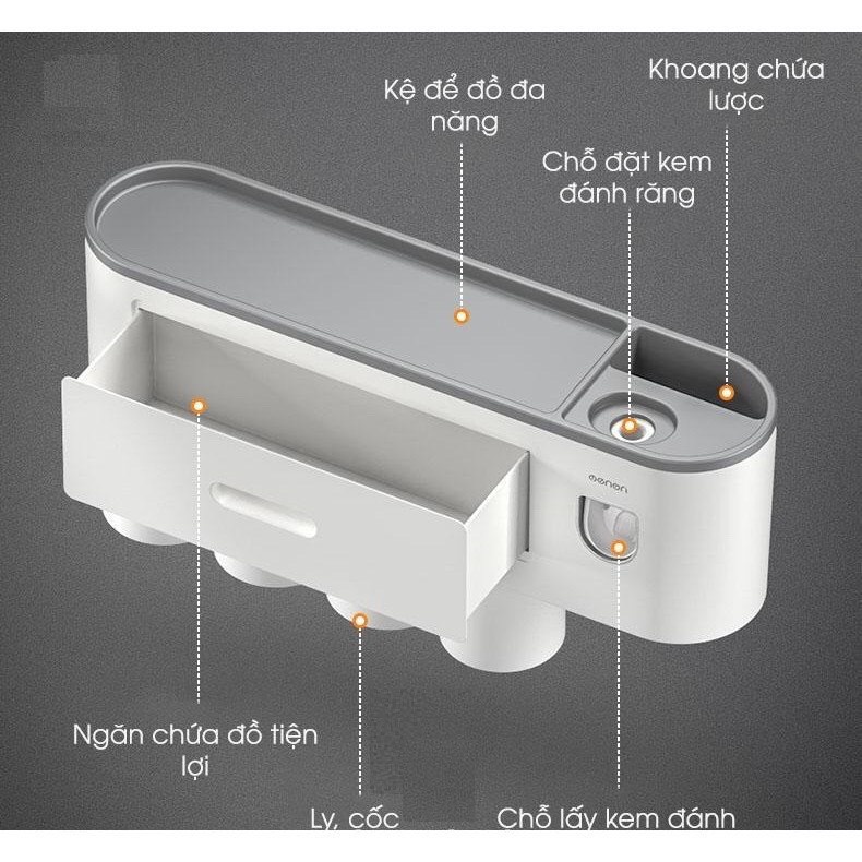 Bộ Nhả Kem Đánh Răng Tự Động, Kệ Để Đồ Phòng Tắm Cao Cấp ( Tặng Kèm Miếng Dán )