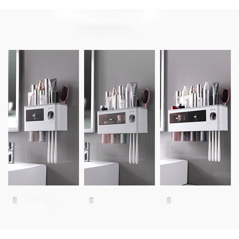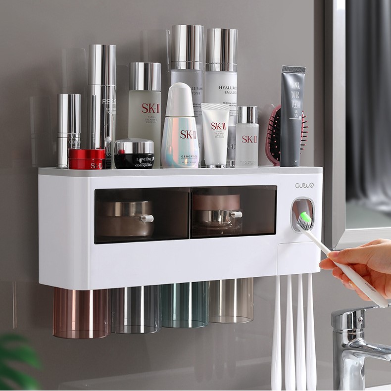 Bộ Nhả Kem Đánh Răng Tự Động , Kệ Dán Để Đồ Nhà Tắm Dán Tường Cao Cấp 1,2,3,4 Cốc Nhiều Màu Cao Cấp Sang Trọng & An Toàn