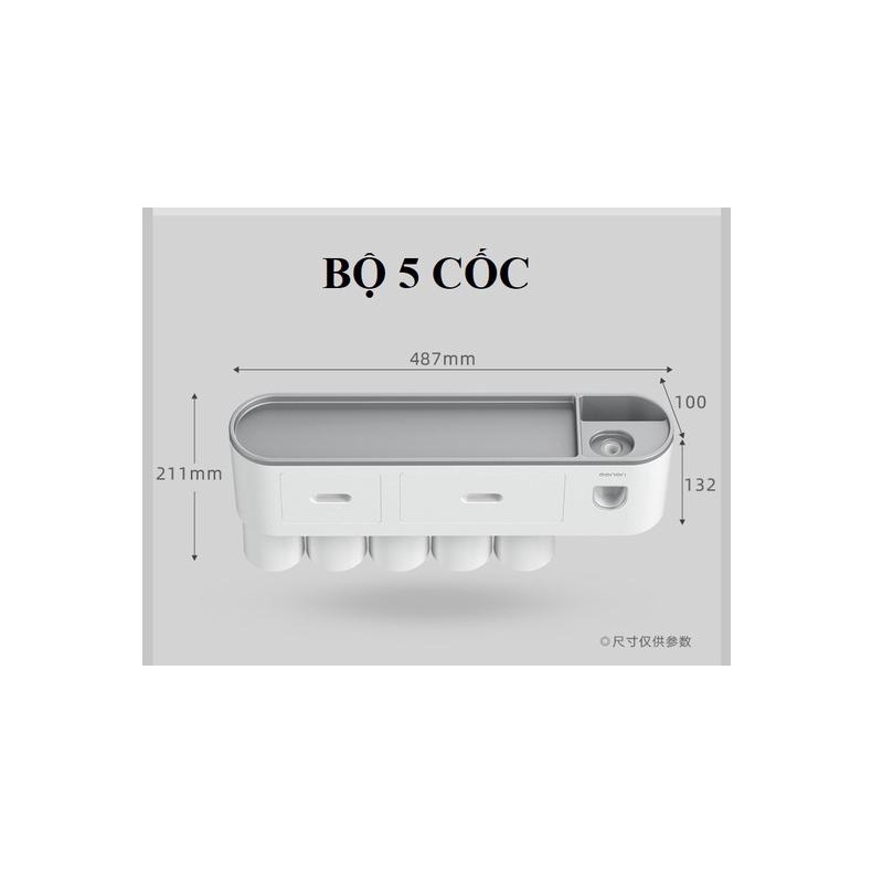Bộ Nhả Kem Đánh Răng 5 Cốc Tự Động OENON Khay Đựng Bàn Chải Đánh Răng Kèm Ngăn Kéo Dán Tường