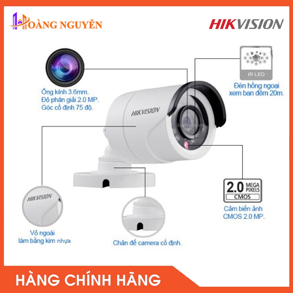 Giới thiệu [NHÀ PHÂN PHỐI] Camera HDTVI ngoài trời hồng ngoại 20m 2MP Hikvision DS-2CE16D0T-IRP