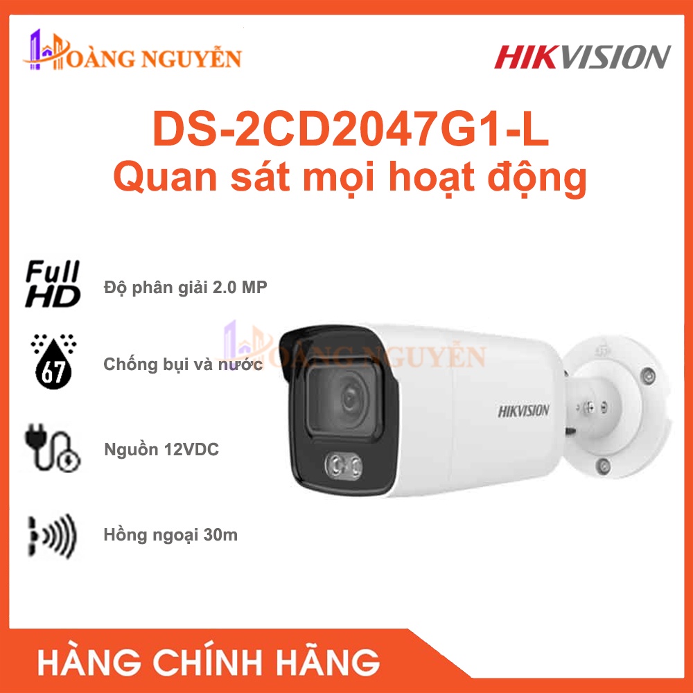 [NHÀ PHÂN PHỐI] Camera Hikvision DS-2CD2047G1-L 4MP - Có Màu Ban Đêm - Chức Năng Bù Ngược Sáng BLC