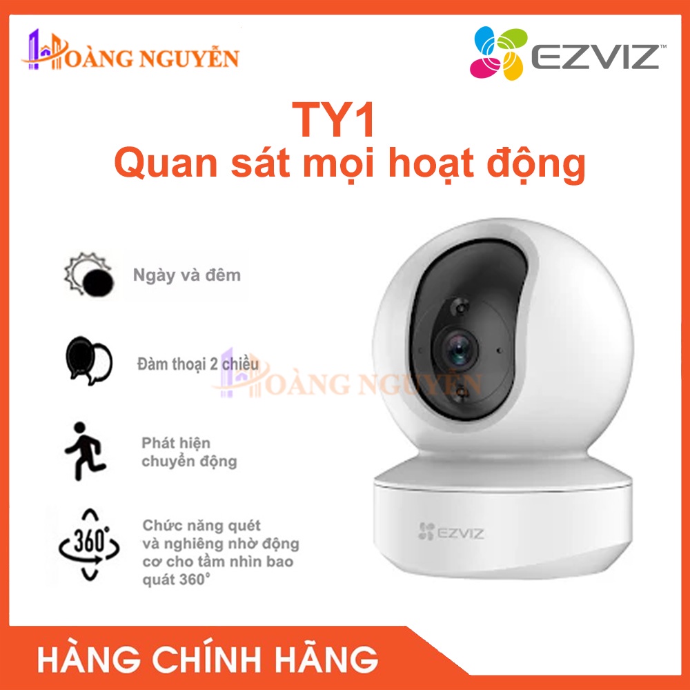 [NHÀ PHÂN PHỐI] Camera Không Dây EZVIZ TY1 Wifi HD1080P 2MP - Đàm Thoại 2 Chiều Xoay Theo Chuyển Động - Công Nghệ Hoàng NguyễnCamera quay & quét kết nối WiFi thông minhDễ dàng quan sát toàn bộ không gian của bạn với phạm vi quan sát 360 độ của Camera TY1 cùng tính năng theo dõi thông minh. Bảo an cho bạn - cả ngày lẫn đêm