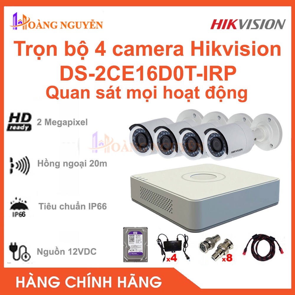 Giới thiệu [NHÀ PHÂN PHỐI] Trọn Bộ 4 Camera 2MP Hikvision DS-2CE16D0T-IRP Full HD 1080P - Hàng Chính Hãng Siêu Bền, Chuẩn H265+