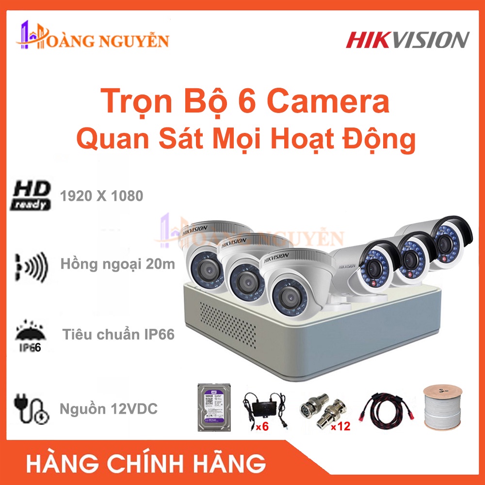 Cameras & Flycam > Camera giám sát > Camera giám sát kết nối internet || [NHÀ PHÂN PHỐI] Trọn Bộ 6 Camera 2MP giá rẻ Hikvision DS-2CE16D0T-IRP + DS-2CE56D0T-IRP + DS-7104HGHI-F1 - Chính HãngCòn hàng