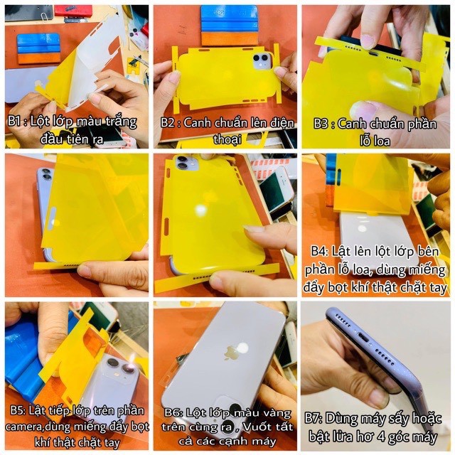 Bước 1 : Bóc lớp dưới cùng dán lên lưng máy căn khớp lỗ loa , có tác dụng hút bụi bề mặt