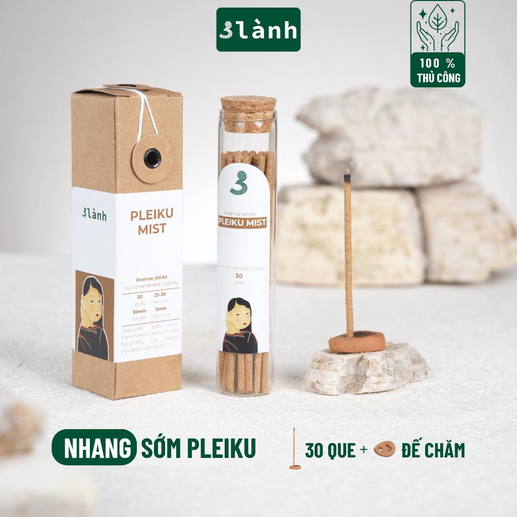 Nhang Thủ Công Sớm Pleiku 3 Lành Hộp 30 Que 100 % Tự Nhiên Tặng Kèm Đế Chăm Không Hóa Chất Xông Thơm