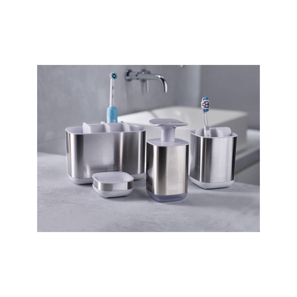 👉 Khay đựng bàn chải, kem đánh răng Joseph Joseph vơi thiết kế nhiều ngăn đa kích thước phù hợp cho nhiều dụng cụ chăm sóc răng miệng khác nhau. Thiết kế đơn giản nhưng có tính tiện ích cao đem lại sự ngăn nắp gọn gàng sang trọng cho nhà tắm. Phần ngăn chia và phần đáy dễ dàng được tháo lắp để vệ sinh sạch sẽ.