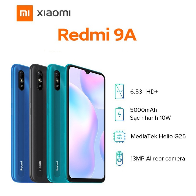 XIAOMI REDMI 9A - PIN SIÊU KHỦNG, GIÁ CỰC RẺRedmi 9A sẽ là gương mặt đại diện sáng giá tiếp theo của dòng smartphone siêu rẻ nhưng mang đến những trải nghiệm vượt tầm giá của thương hiệu điện thoại nổi tiếng Xiaomi.