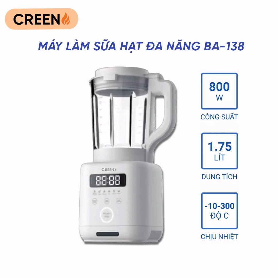 Máy làm sữa hạt, máy làm sữa đậu nành CREEN BA-138/ Nineshield KB 502- KB 503CAM KẾT: SỮA SIÊU MỊN KO CẦN LỌC- BẢO HÀNH 12TH