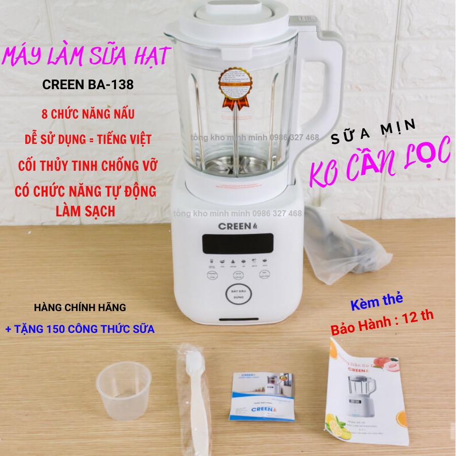 Thiết Bị Điện Gia Dụng > Đồ gia dụng nhà bếp > Máy ép, Xay sinh tố & Máy làm sữa đậu nành || [Mã 273ELHA100K0 hoàn 7% đơn 500K] [Nhập Khẩu- BH 12th] Máy làm sữa hạt, máy làm sữa đậu nành Nineshield / CREENCòn hàng
