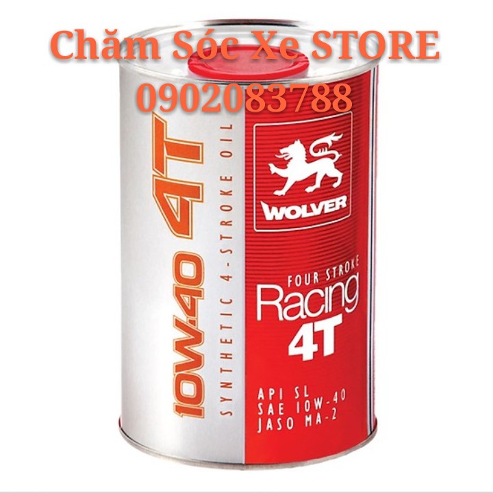 - Nhớt Wolver Racing 4T tổng hợp 10W40 ứng dụng công nghệ tổng hợp hoàn hảo được nhập khẩu từ Đức. với công thức pha chế phụ gia đủ tiêu chuẩn, có thể đáp ứng các yêu cầu kỹ thuật của những thế hệ động cơ đời mới nhất, với tính năng bảo vệ chống mài mòn, chống giảm áp suất dầu và hiện tượng oxy hóa ở nhiệt độ cao.