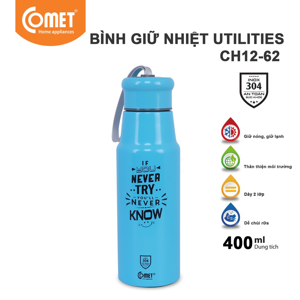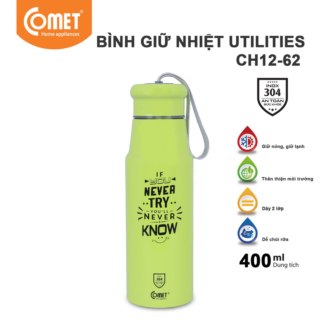 Nhà cửa & Đời sống > Bộ đồ bàn ăn > Bình nước & phụ kiện || [Mã LIFEMALLCP4 giảm 12% đơn 250K] Bình giữ nhiệt Utilities COMET CH12-62 (400ml)Còn hàng