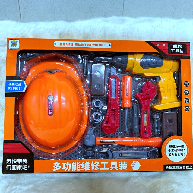 Nhà cửa & Đời sống > Dụng cụ & Thiết bị tiện ích > Dụng cụ > Hộp dụng cụ cầm tay || Đồ Chơi Nhập Vai_ Bộ Dụng Cụ Kỹ Sư Cơ Khí Nhiều Chi Tiết (máy khoan chạy pin+mũ bảo hộ lao động)Còn hàng
