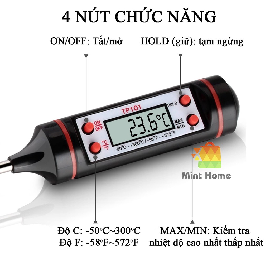 Giới thiệu Nhiệt kế điện tử đo nước pha sữa cho bé, trẻ em, đo nhiệt độ thực phẩm nấu ăn, làm bánh, dầu, tắm cho phòng bếp