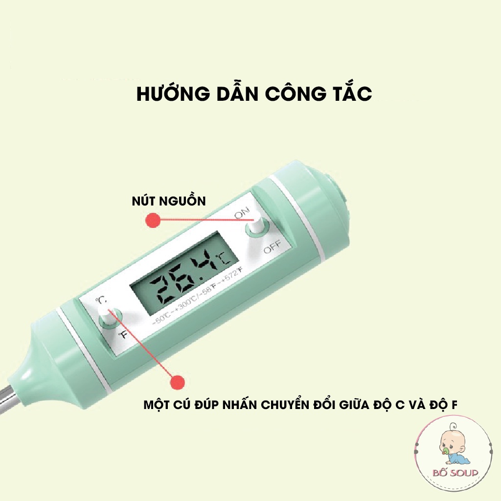 Giới thiệu Nhiệt kế đo nước pha sữa, đo nhiệt độ nước, thức ăn Misuta chính xác sang trọng Shop Bố Soup