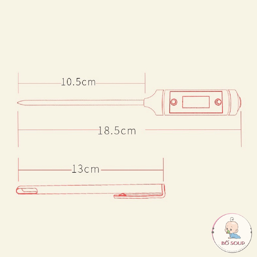 ➖ Đầu thử dài 10.5cm, toàn bộ nhiệt kế dài 18.5cm.