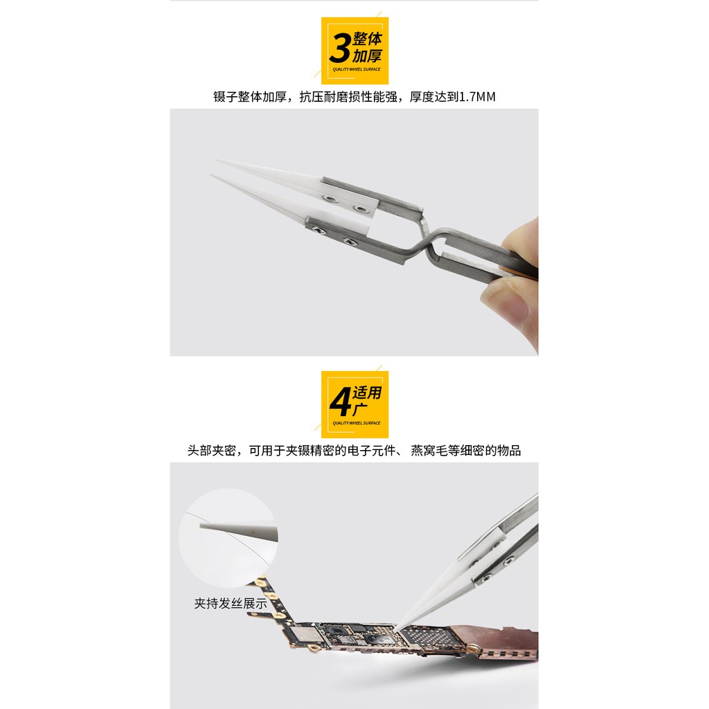 Nhíp chống tĩnh điệnChất liệu đầu nhíp được làm bằng sứ, thay thế được.
