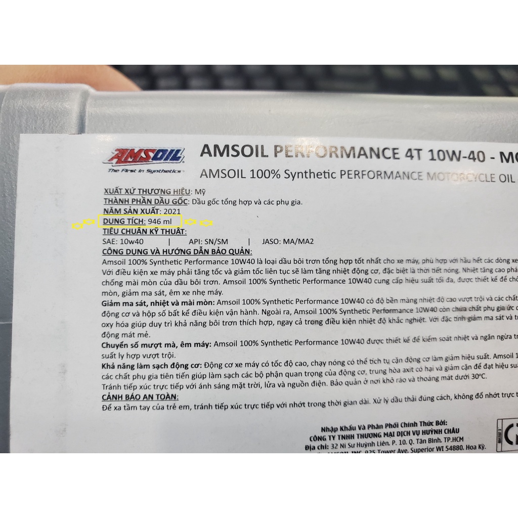 Ô tô > Dầu nhớt và phụ gia ô tô > Mỡ & Chất bôi trơn || NHỚT AMSOIL 10W40 4T PERFORMANCE - DÀNH CHO XE EXCITER WINNER SONIC RAIDER SATRIACòn hàng