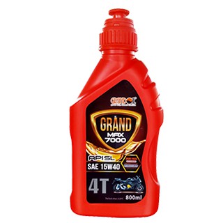 ầu nhớt Grand Max 7000 4T 15w40 1L được sử dụng cho động cơ 4 thì cùa xe máy, và sự phối trộn từ dầu gốc chất lượng cao và phụ gì chọn lọc, nhằm sự ổn định oxy hóa, bảo vệ động cơ khỏi ăn mòn và mài mòn. Đáp ứng hiệu năng API SL.Thiết kế đặc biệt cho động cơ 4 thì hiện đại cho các loại xe Châu Á, Châu Âu, các loại xe của Nhật Bản như Honda, Yamaha, Suzuki…. Hoạt động ở nhiều chế độ vận hành (tốc độ cao,tải trọng tối đa và tải trọng động lực). Đảm bảo hoạt động trơn tru của bộ li hợp ướt và khô. Cùng với các thành phần tẩy rửa tiên tiến, động cơ giảm thiểu được lượng chất thải đến mức tối đa, khởi động dễ dàng , tăng tốc nhanh, tiết kiệm nhiên liệu. Sử dụng thích hợp cho các loại xe gắn máy 4 thì.Thông số kỹ thuật: